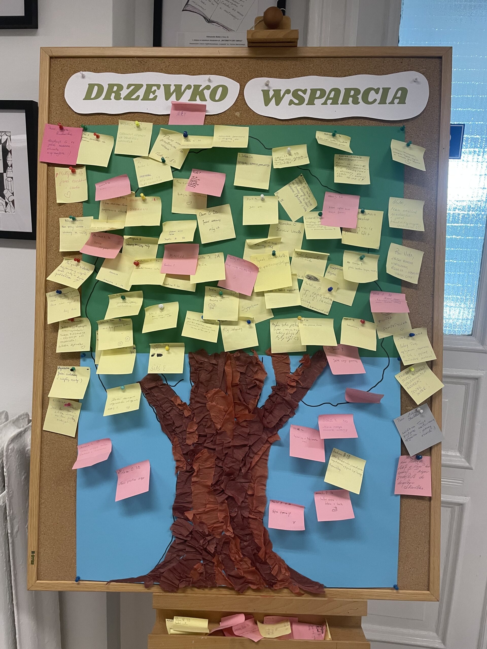 Każdy uczeń i nauczyciel miał okazję napisać dobre słowo drugiej osobie – krótki liścik, pełen wsparcia, sympatii i życzliwości. W ten sposób nasze drzewko obrosło kolorowymi listkami, które przypominają, że drobne gesty mają ogromną moc.