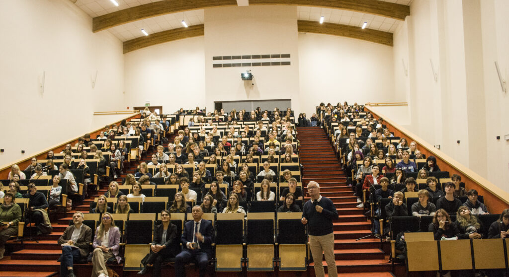 To wyjątkowe wydarzenie zaczęliśmy od wysłuchania wykładu profesora Ryszarda Barczyńskiego – naukowca, inżyniera, specjalisty fizyki ciała stałego i elektronicznych technik pomiarowych. Wykład „Jak pozbywano się drutu czyli historia elektroniki” to opowieść o tym, jak krok po kroku pozbywano się plątaniny drutów: od wielkich, ręcznie łączonych tablic kablowych w początkach XX wieku, przez lampy próżniowe, aż po tranzystory i układy scalone. Miniaturyzacja i integracja sprawiły, że zamiast kilometrami przewodów otrzymaliśmy mikroprocesory wielkości paznokcia, co umożliwiło powstanie m.in. komputerów osobistych i telefonów komórkowych.