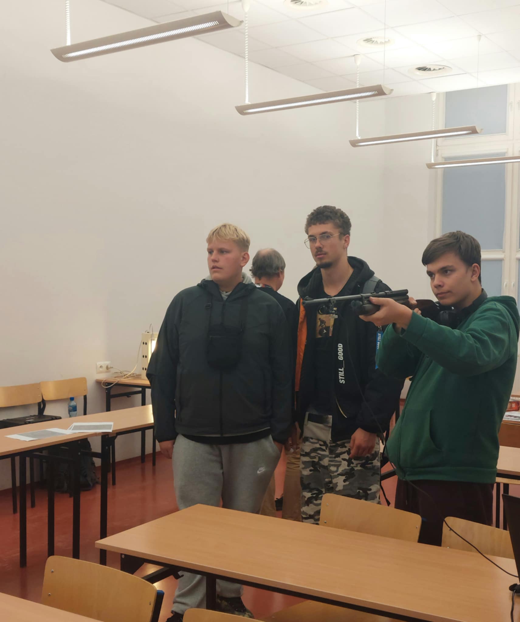 Po wykładzie oglądaliśmy pokazy Kół Naukowych studentów PG związane m. in. z elektrostatyką, optyką i magnetyzmem. Próbowaliśmy swych sił na strzelnicy laserowej, w której strzelanie z broni pneumatycznej odbywa się z wykorzystaniem systemów optycznych i czujników. A na Spotkaniu z Astrofotografią dowiedzieliśmy się jak fotografować mgławice, galaktyki i inne obiekty głębokiego nieba.